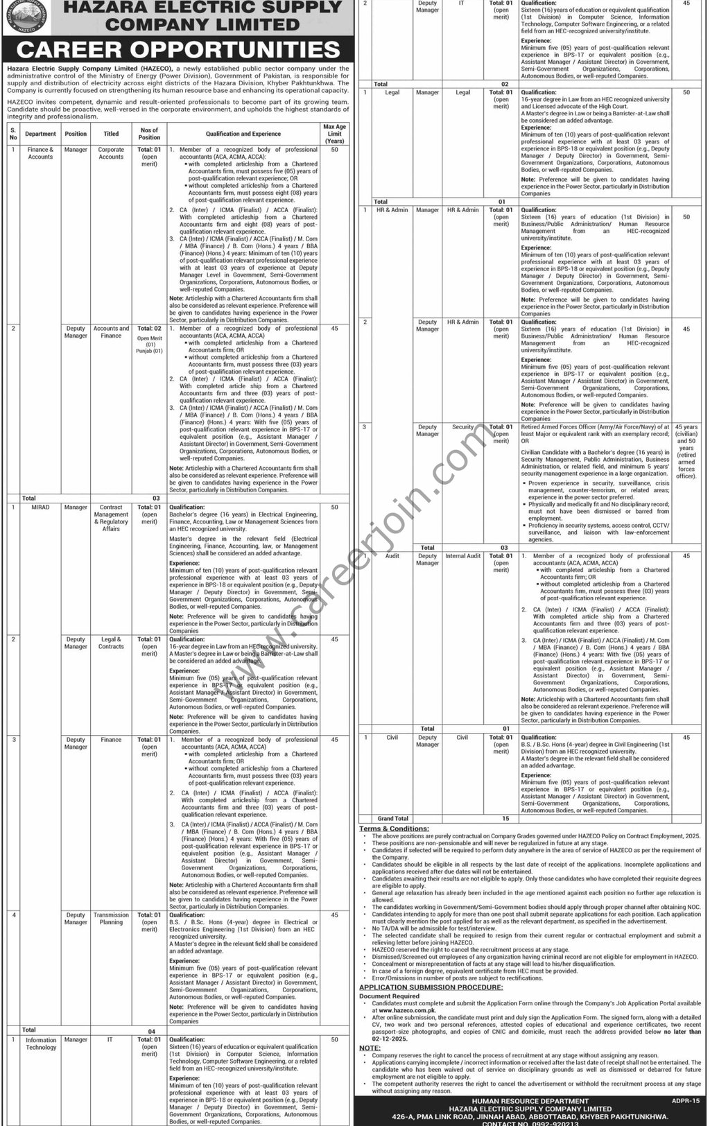 Hazara Electric Supply Co Ltd HAZECO Jobs November 2025